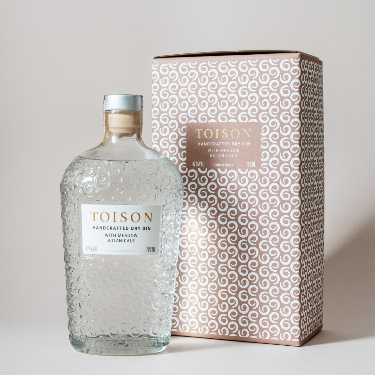 TOISON sa vyrába maceráciou borievok, kvetov a bylín s obilným spiritom v prvotriednom destilačnom zariadení Holstein. Gin následne odpočíva v starožitných kameninových nádobách z bývalého Československa. Jemnosť, ľahkosť, vyladenosť chutí no zároveň výnimočná sila radí TOISON k prémiovým ginom.